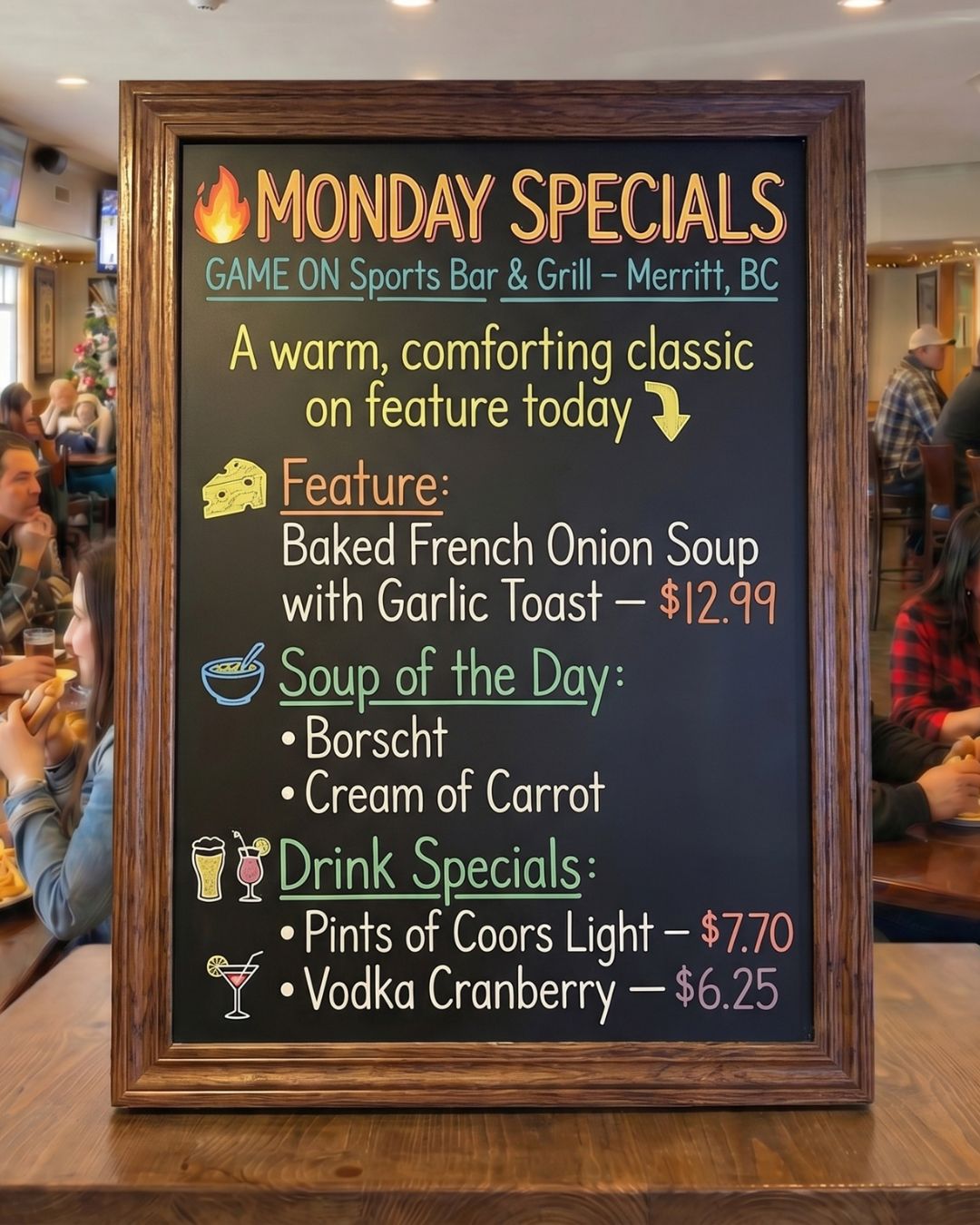 GAME ON Sports Bar & Grill – Merritt, BC A warm, comforting classic on feature...