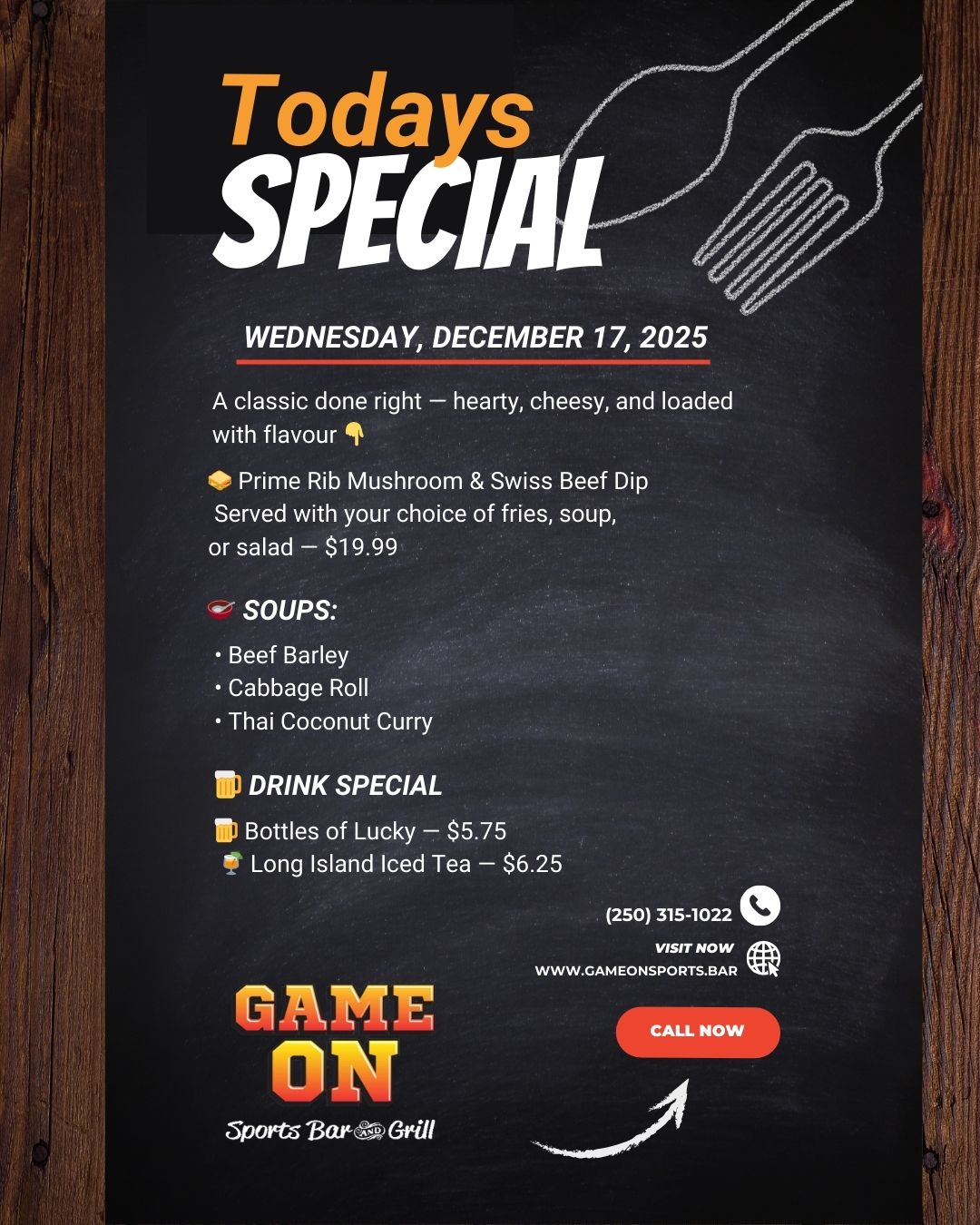 Game On Sports Bar & Grill 3701 Dewolf Way, Merritt, BCA classic done right — hearty, cheesy, and loaded with flavour 👇 🥪 Prime Rib...