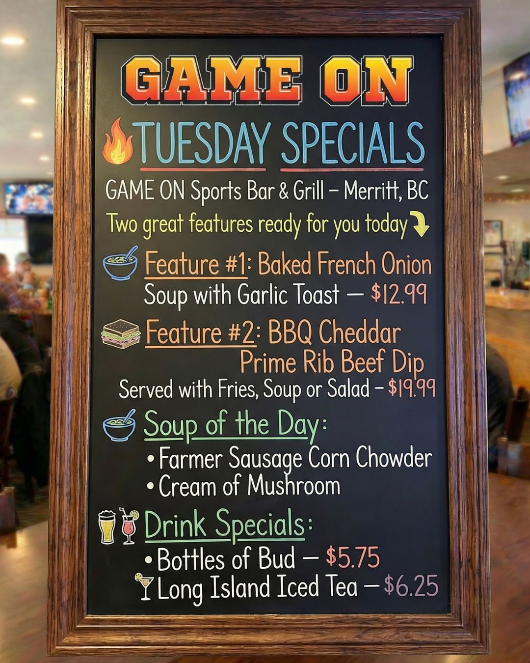GAME ON Sports Bar & Grill β Merritt, BC Two great features ready for you...