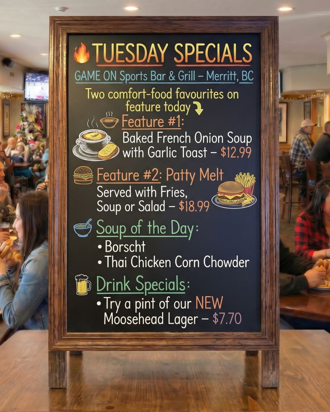 GAME ON Sports Bar & Grill β Merritt, BC Two comfort-food favourites on feature today...