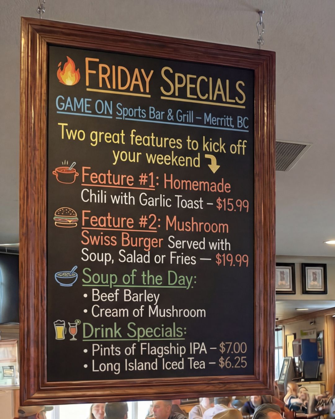 GAME ON Sports Bar & Grill – Merritt, BC Two great features to kick off...
